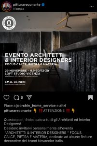 Sala1: presentazione nuovi prodotti della Novacolor Italia con dimostrazione dell’ambassador vicentino Emjl Berdin IG:@pitturareconarte ad architetti della zona.